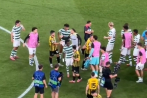 体育资讯9月20日讯 在本轮欧冠联赛,葡体4-1击败阿拉木图凯拉特,将在明年加盟切尔西的昆代和萨特帕耶夫在赛后进行了问候。